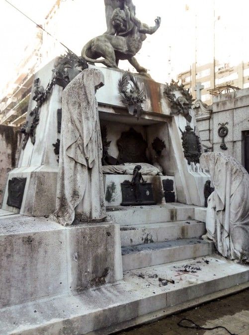 Alrededor del mausoleo de Ramón Falcón la policía se topó con pintadas anarquistas, agregaron los voceros.
