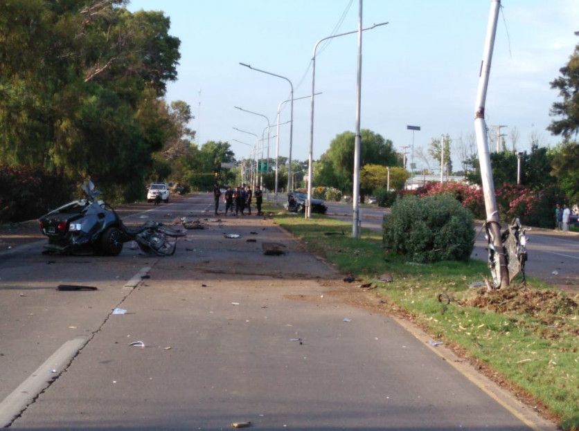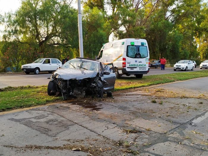 Por causas que se intentan esclarecer, a la altura del cruce con Pedro Pascual Segura, chocó contra un poste de luz, provocando que el coche quedara partido a la mitad. En tanto que también se cruzó de carril, chocando a un colectivo de la empresa CATA, que sufrió algunos daños.