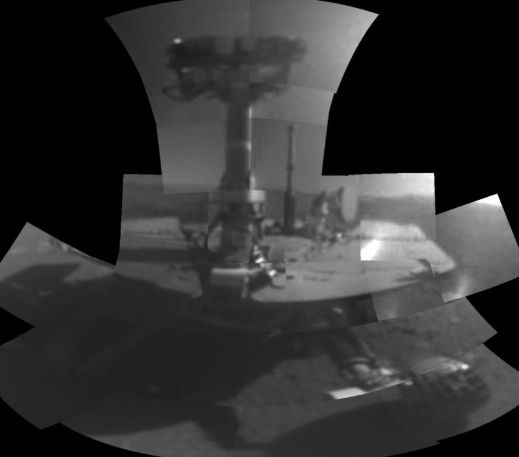 Primer selfi en Marte. Este selfie del Opportunity muestra el vehículo en un sitio llamado Perseverance Valley, cerca de donde aterrizó el rover en Marte.