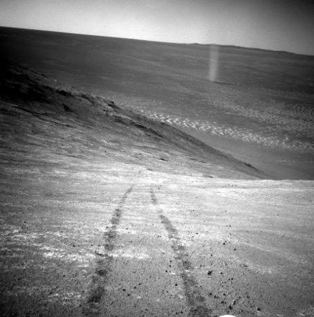 'Diablo de polvo'. En 2016, el Opportunity tomó una foto de un 'diablo de polvo' (remolino de arena) que se desplazaba por la superficie del planeta rojo.