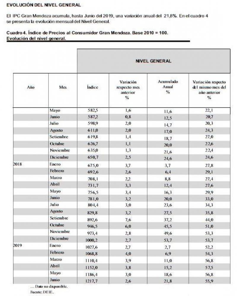 El IPC mendocino acumula en lo que va del año un aumento de 21,8% y un incremento interanual de 55,9%.