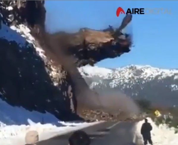 El increíble desprendimiento ocurrió por la tarde en la Ruta 40, durante el tramo del brazo Huemul, entre Bariloche y Villa La Angostura.