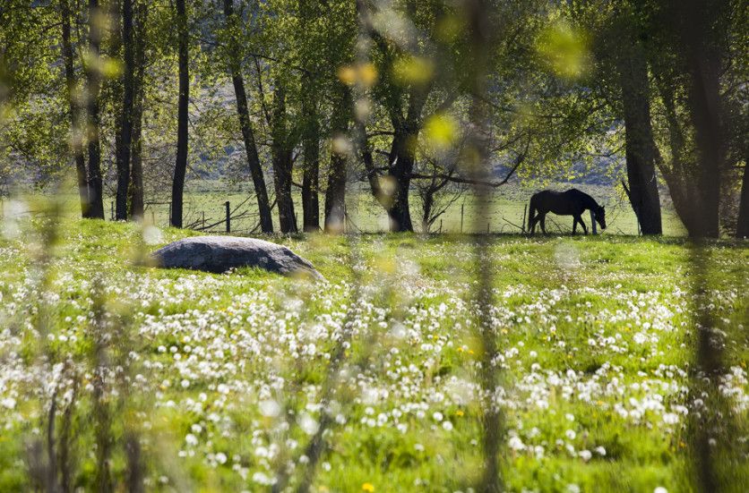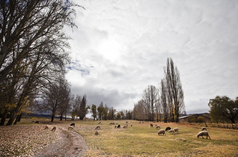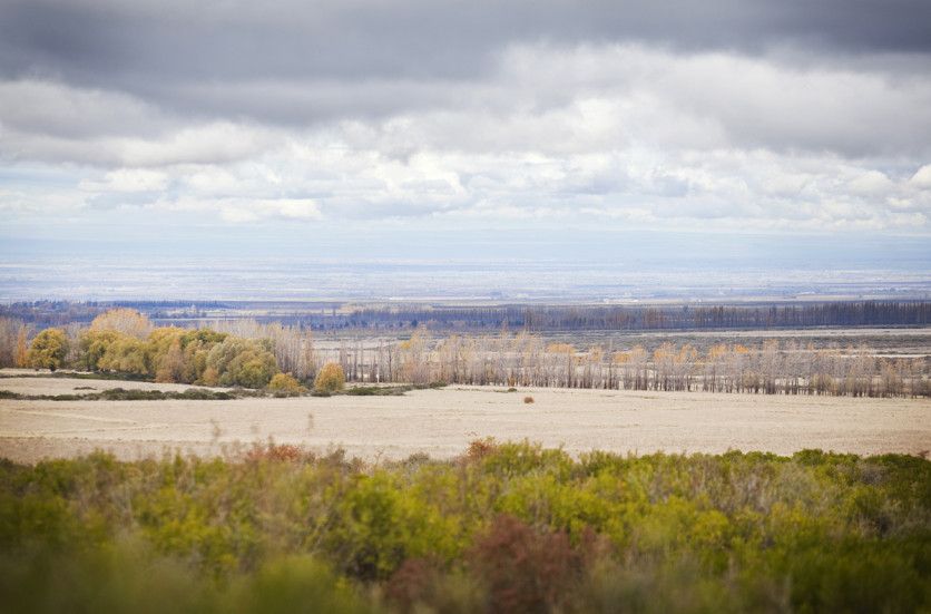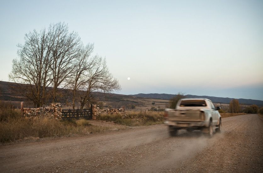 El camino de Las Carreras une la Villa de las Vegas en Potrerillos con la de San José en el departamento de Tupungato, en el mientras tanto los paisajes mutan en la ventanilla: cumbres nevadas de telón, pampas con ganado, área de cultivos y alamedas que aguardan la primavera para desplegar su verde y plata. Foto: Cristian Lozano