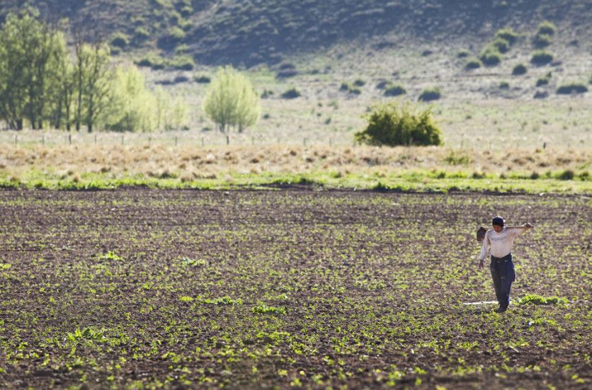 Ya arribando al Valle de Uco los cultivos se hacen notar, el área de frutales, las de papa y hortalizas en esa caprichosa cuadrícula de parcelas vecinas. Foto: Cristian Lozano