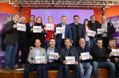 El actual mandatario provincial y precandidato a diputado nacional estuvo junto a las y los compañeros de lista, Jimena Latorre y Omar De Marchi, en el Comité Provincia de calle Alem. También estuvo presente el candidato a gobernador e intendente de Ciudad, Rodolfo Suarez.