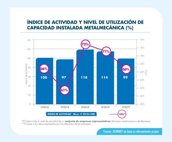 La actividad del sector en su totalidad entre los primeros trimestre del 2018 y del 2019, registró un movimiento casi nulo, es decir que no mostró avances ni retrocesos. La utilización de la capacidad instalada a principios del 2018 era de 66% y un año después es idéntico.