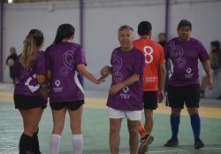Luego, jugaron un partido de fútbol de equipos mixtos en la nueva cancha que se encuentra en el renovado espacio. Se sumaron al juego la ministra de Hacienda y Finanzas, Paula Allasino, y el senador provincial Diego Costarelli, junto a autoridades municipales y jugadores amateurs. El encuentro terminó 3 a 2 a favor del equipo del mandatario mendocino.