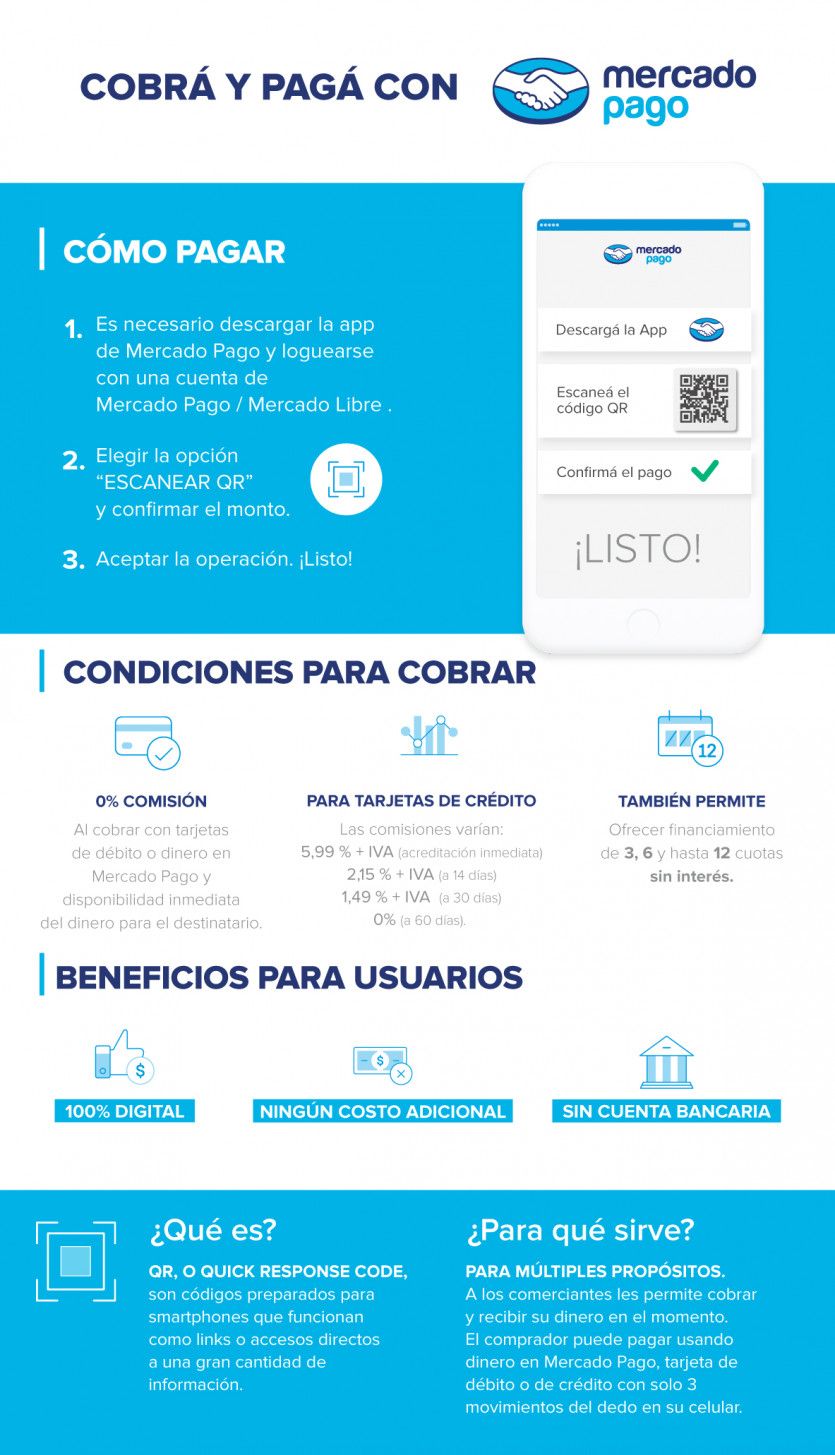 "Lo importante de este servicio, desde la perspectiva de los comercios, es que no tiene costo de inversión. No hay que comprar ningún aparato para poder aceptar cualquier pago con tarjeta de crédito o débito y no tiene ningún costo de mantenimiento, porque desde el celular o bien imprimiendo un código QR el comerciante va a poder estar cobrando", señala Alejandro Losada, gerente comercial en Mercado Pago, antes de destacar la rapidez de la operación ya que operar con código QR reducen en hasta un 50% los tiempos de las operaciones.
