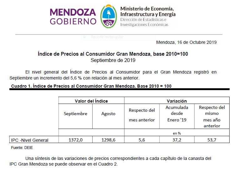 Mientras que la inflación a nivel nacional trepó al 5,9%, informó esta tarde el Instituto Nacional de Estadística y Censos (INDEC), como consecuencia directa de la devaluación producida tras las PASO.