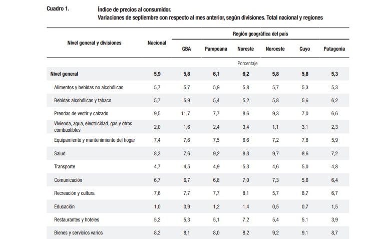 La inflación de septiembre pasado fue del 5,9%, como consecuencia directa de la devaluación producida tras las PASO, informó el Instituto Nacional de Estadística y Censos (INDEC).