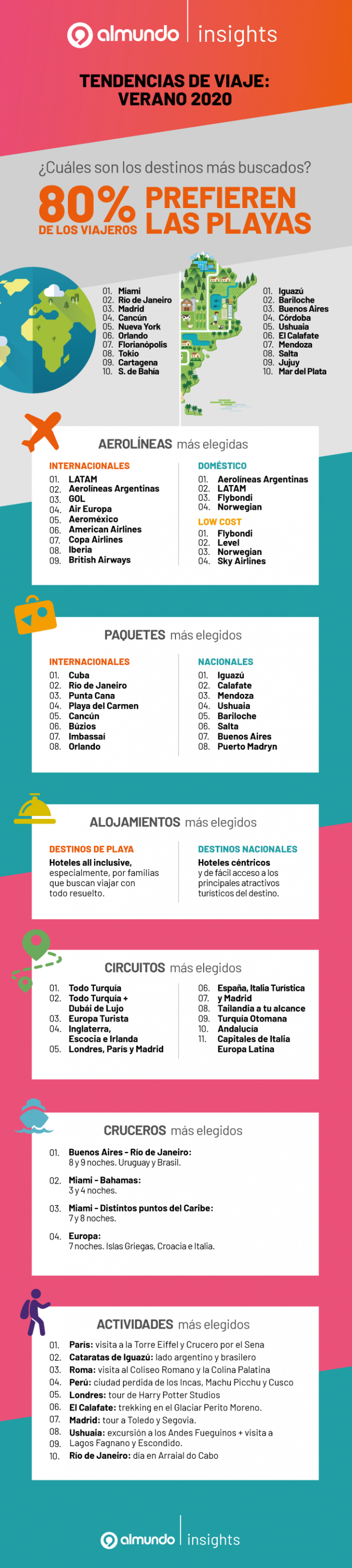 El informe Almundo Insights que detalla los comportamientos y hábitos de compra de los argentinos, analiza una vez más las distintas variables para comprender mejor las preferencias de los viajeros para el próximo verano.