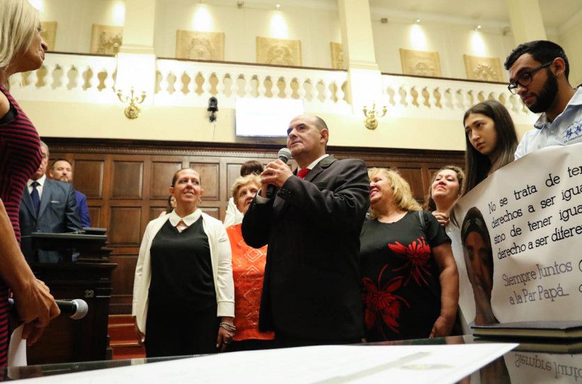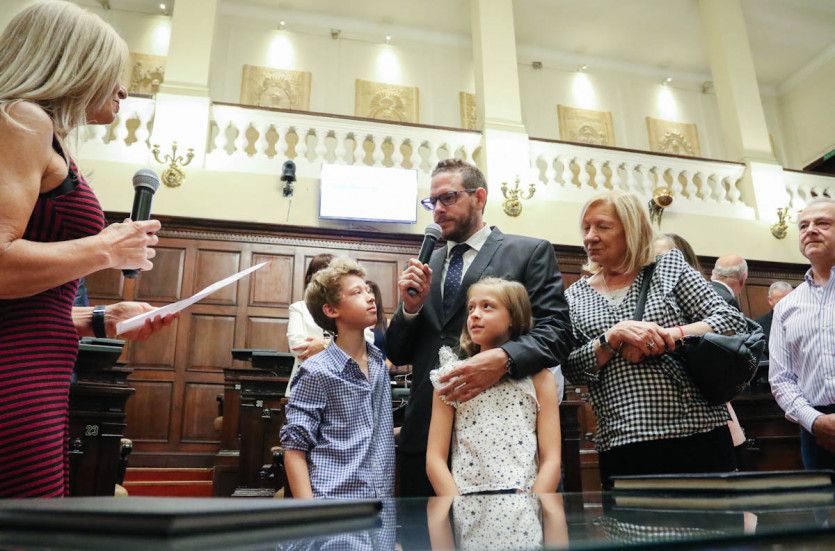 "Señora Vicegobernadora, señor Vicegobernador electo, autoridades y legisladores. En primer lugar siento un gran orgullo que el socialismo tenga un espacio en esta Legislatura. Para mí, es un día muy especial y muy duro porque hace un tiempo atrás nuestro único hijo abrió sus alas y debe estar por acá, en algún lugar del recinto, y me está acompañando. Estoy dispuesto hasta dar la vida por eso. Sí, juro", expresó el senador de San Martín.