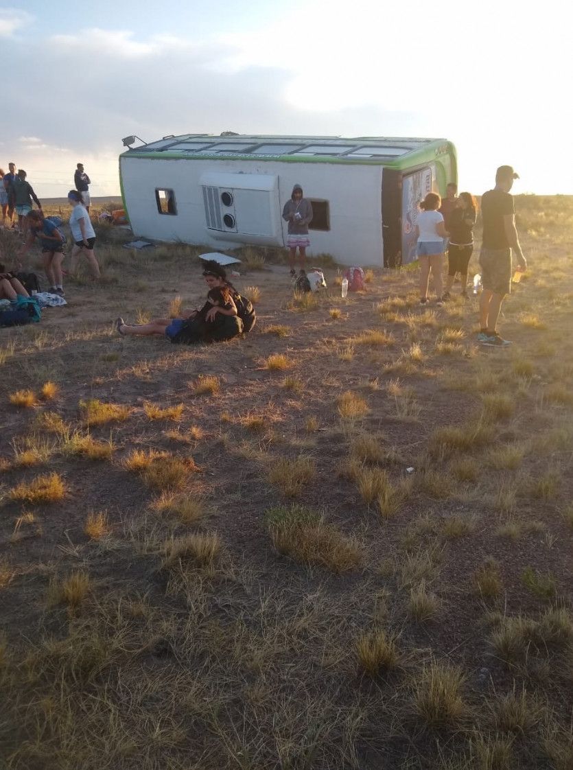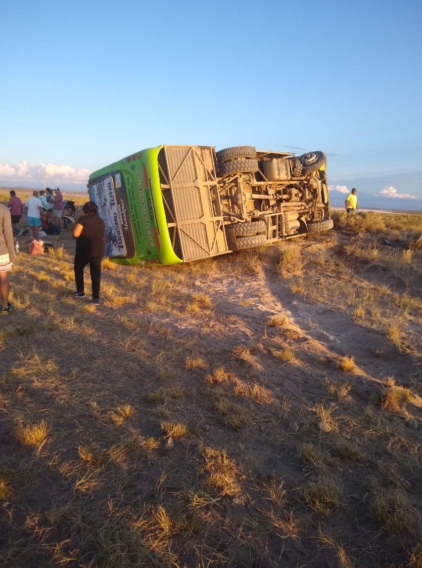 Según precisó el Ministerio de Seguridad, el chofer del colectivo mordió la banquina, perdió el control del rodado y volcó, quedando a 10 metros de la carpeta asfáltica, costado Este.