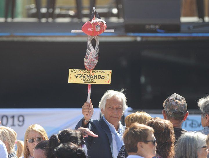 Muchos de los manifestantes sostienen banderas argentinas, carteles con la cara de Fernando y pancartas que dicen "Todos con Fernando, la sociedad exige justicia". También hay remeras y banderas que hacen referencia a él. "Dios te tiene en el cielo, nosotros en nuestro corazón", dice una con letras celestes que cuelga del escenario. "Perpetua para los rugbiers", exige otra.