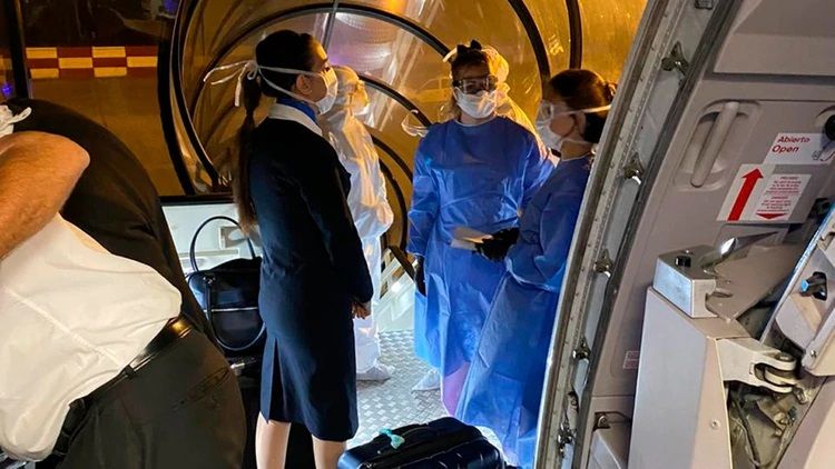 Personal sanitario del aeropuerto de Ezeiza tuvo que activar esta madrugada el protocolo de emergencia por coronavirus a bordo de una avión procedente de Miami debido a que tres de los pasajeros presentaban fiebre.