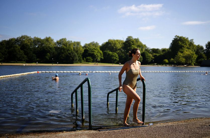 Bañistas se refrescan en el Serpentine Lido del Hyde Park de Londres.