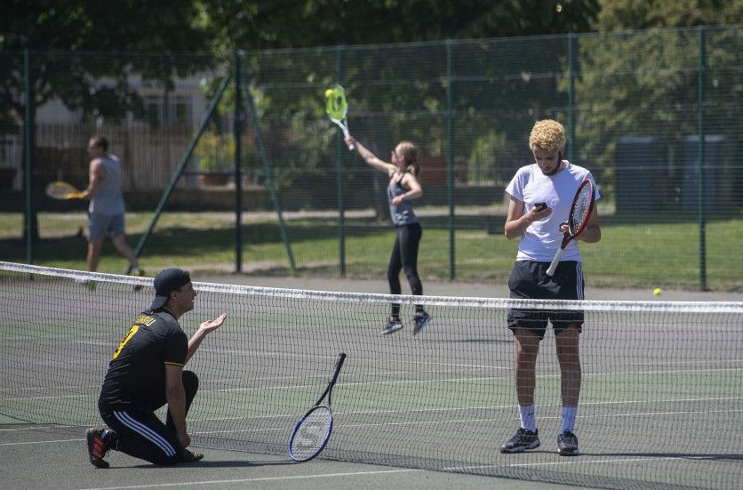 Jóvenes juegan al tenis en Cambridge, Inglaterra.