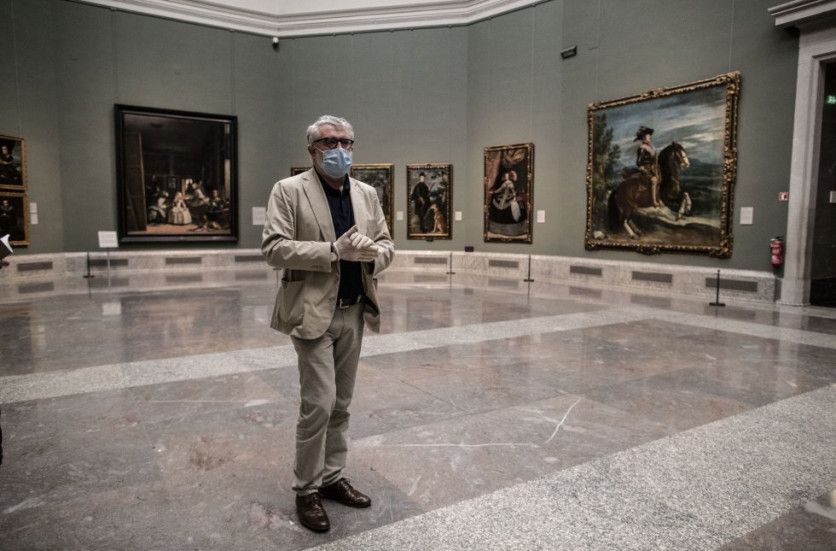 Miguel Falomir en la sala 12 del museo del Prado, la de 'Las meninas', que se ha enriquecido con 'Las hilanderas', 'Los borrachos' y cinco bufones velazqueños dispuestos a la manera de un retablo. ÁLVARO GARCÍA