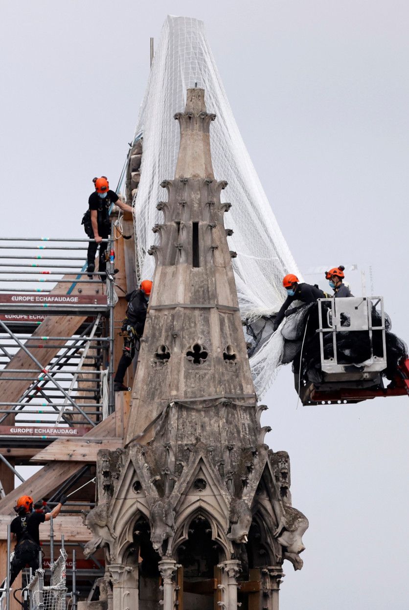 El desmontaje del andamio de Notre Dame de París, instalado antes del devastador incendio de 2019, empezó este lunes, una de las etapas más importantes y peligrosas del titánico proyecto de reconstrucción de la catedral.