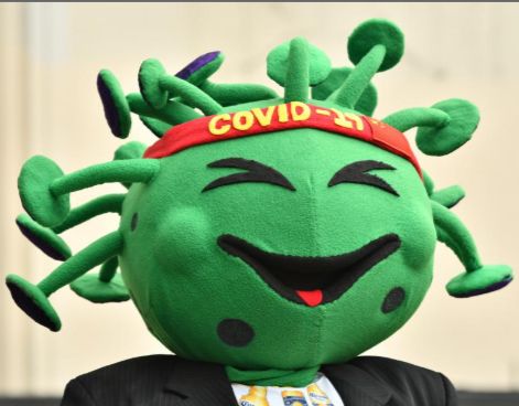 Irónica protección. Un artista callejero, que representa un coronavirus sonriente, protesta durante una manifestación en México para pedir ayudas al Gobierno.