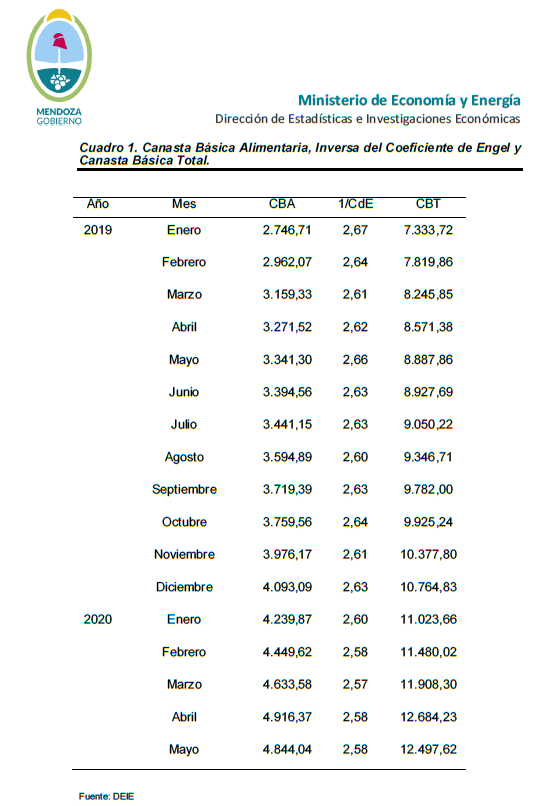 Este miércoles se dieron a conocer los valores de la Canasta Básica de Alimentos y Total y una familia mendocina necesitó en mayo $38.617,66 para no ser pobre y de $14.968,08 para no ser considerada bajo la línea de indigencia.
