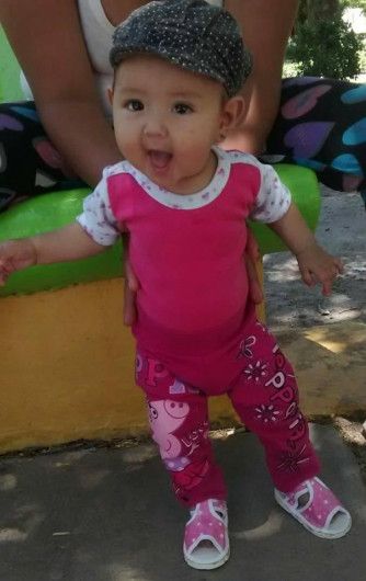 La pequeña Nahiara Ortiz (1) ingresó el domingo al hospital Saporiti de Rivadavia con hematomas en distintas partes del cuerpo y vómitos.