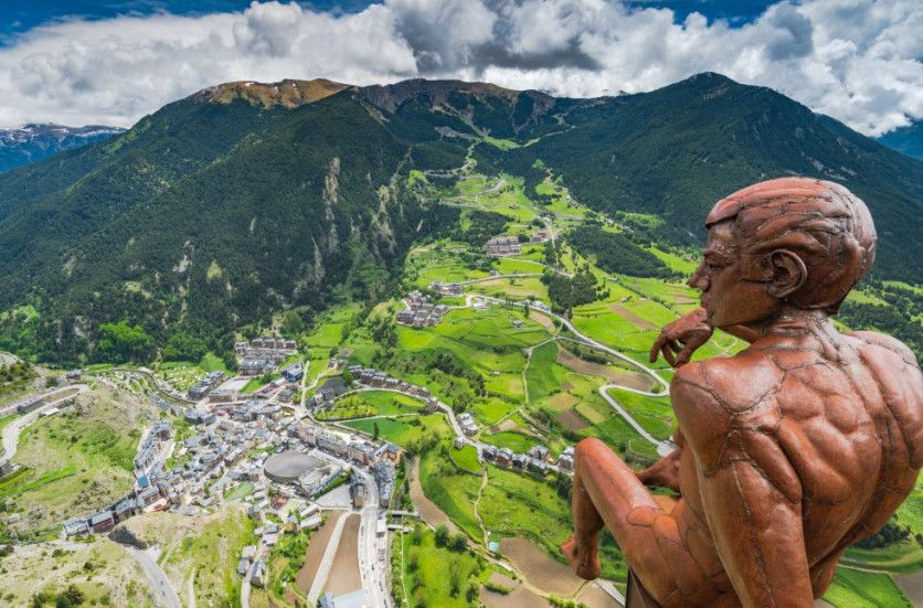Roc del Quer (Andorra) Día tras día, ese hombre caviloso sin nombre está sentado a varios cientos de metros sobre los verdes valles de los Pirineos al borde de su plataforma. ¿En qué pensará? Quizá esta estatua, situada en Canillo, en mitad del diminuto Principado de Andorra, quiera decirnos una cosa: que a veces solo es cuestión de balancear los pies sobre el abismo, mirar a las montañas y celebrar la belleza del entorno MJUCHA GETTY IMAGES