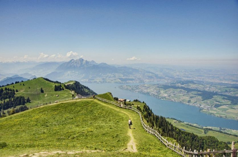 Rigi Kulm (Lucerna, Suiza) A quien, con esta sobrecogedora vista de lagos, montes y la meseta que se extiende hasta la Selva Negra, le sobrevenga un repentino anhelo de autorrealización artística, que sepa que no es el primero. Existe desde hace mucho toda una tradición de acuarelistas, como el inglés Turner, que han plasmado estos majestuosos paisajes. Un tren de cremallera lleva hasta el Rigi Kulm, a 1.800 metros, desde Vitznau y Arth- Goldau. Los martes el viaje es incluso gratuito. JISHNU CHANGKAKOTI GETTY IMAGES
