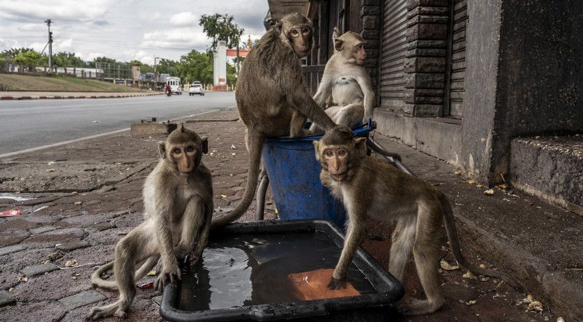 La pandemia de coronavirus se agregó al caos. Los juguetones monos atraían a grandes cantidades de turistas, así como a fieles budistas, quienes creen que alimentar a los animales es una acción digna de mérito. Sus ofrendas favoritas incluían yogur de coco, gaseosa de fresa y paquetes de aperitivos de colores brillantes. Ahora los macacos no entienden dónde ha ido la fuente de su sustento. Y están hambrientos.