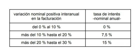 La tasa de interés se determinará en función de la variación interanual en la facturación de la empresa con relación al mismo período del año anterior: