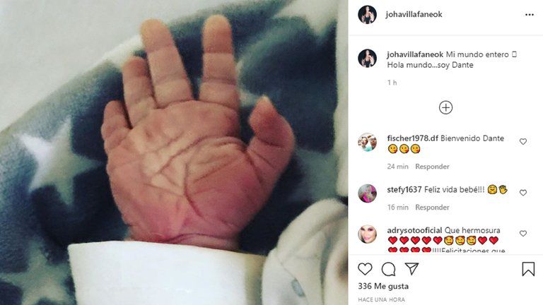 En su cuenta de Instagram, la flamante mamá publicó una foto de la mano del pequeño con la siguiente leyenda: "Mi mundo entero. Hola mundo... Soy Dante".