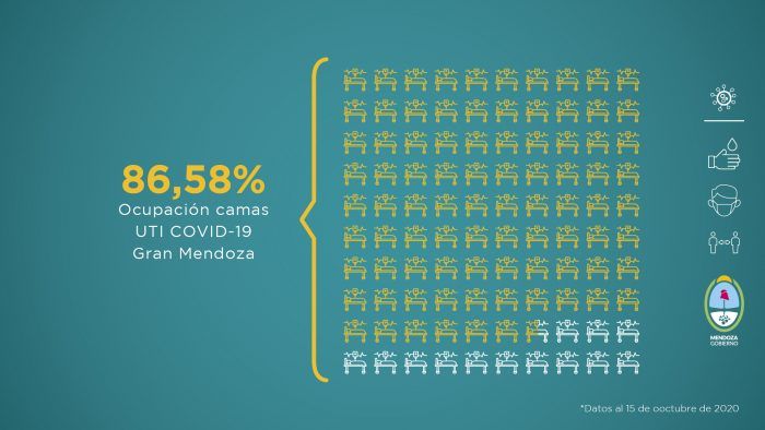 Desde que comenzó la pandemia en Mendoza son hasta anoche a las 21.50: 33.908 confirmados, 18.845 recuperados y 449 fallecidos. En cuanto a la cantidad de casos de COVID-19 en la semana del 8 al 15 de octubre de 2020, a las 21.50, es de 4.817 confirmados, 2.576 recuperados y 80 fallecidos.