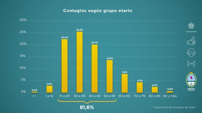 De los datos oficiales también surge que en la franja etaria de los 15 a los 59 años, es donde más contagios se producen y también donde se da el mayor porcentaje de recuperación. Sigue manteniéndose en el 81,6% de los infectados.