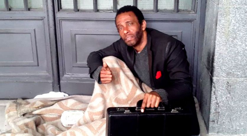 Higgins lleva casi diez años en la calle, desamparado. Su relato no tiene un hilo, es como si sus palabras se mezclaran. Cuando alguien le habla su tema pasa a ser el dinero que dice tener embargado.