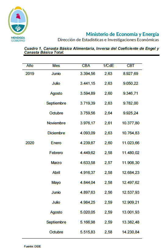 Este martes se dieron a conocer los valores de la Canasta Básica de Alimentos y Total y una familia mendocina necesitó en octubre $43.973,30 para no ser pobre y de $17.043,91 para no ser considerada bajo la línea de indigencia.