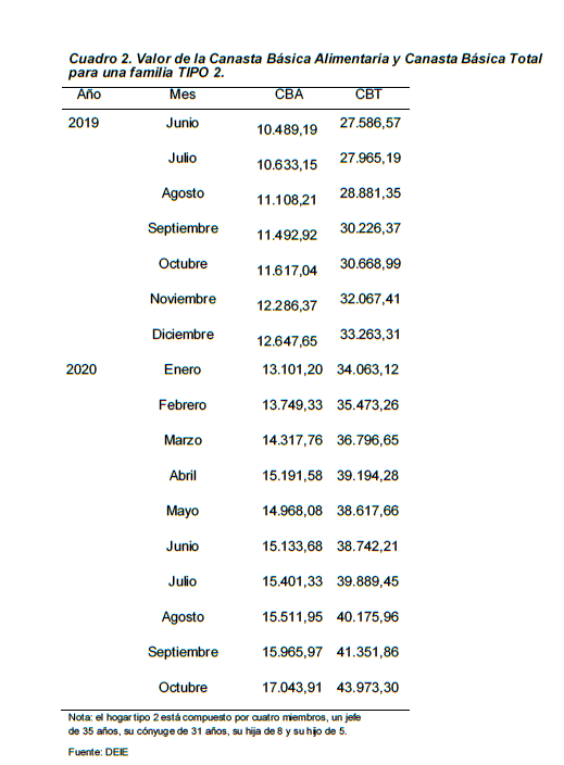 La Canasta básica de alimentos (CBA) es el conjunto de bienes que satisfacen las necesidades nutricionales de las personas, teniendo en cuenta los hábitos de consumo de una población determinada. Por lo tanto, los hogares que cuenten con un ingreso menor al valor de la CBA se consideran pobres extremos o indigentes.