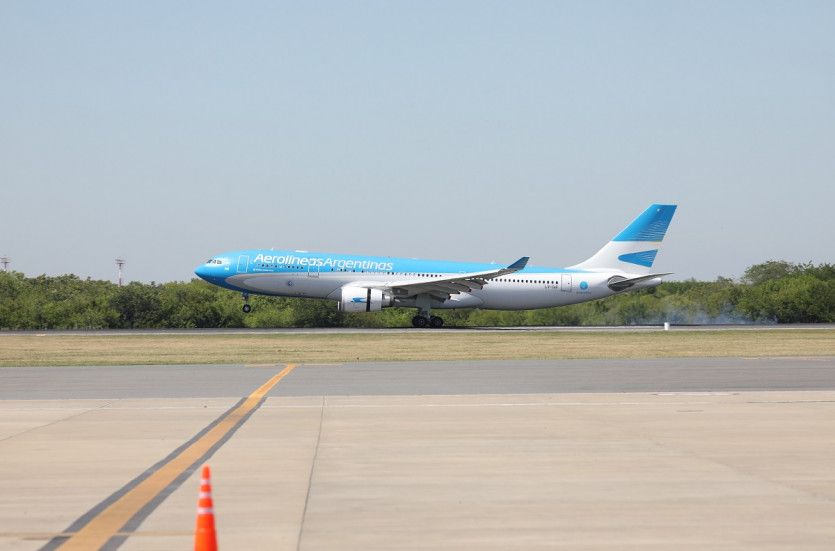 El vuelo de Aerolíneas Argentinas aterrizó en el aeropuerto de Ezeiza a las 10.25.