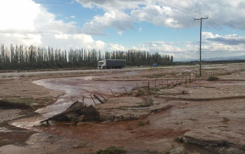 Vialidad Nacional solicita transitar con precuación sobre Ruta 40, por la resencia de piedra y granizo sobre la calzada. Al costado del camino es visible la crecida de los cauces aluvionales.