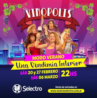 Vinópolis, el unipersonal de Leticia Gili, nos introduce en un nuevo mundo donde descubrimos a través de diferentes personajes, juegos y escenas de humor, lo que significa la vendimia, las tradiciones, los mitos... Y el vino es el principal protagonista. SALUD!