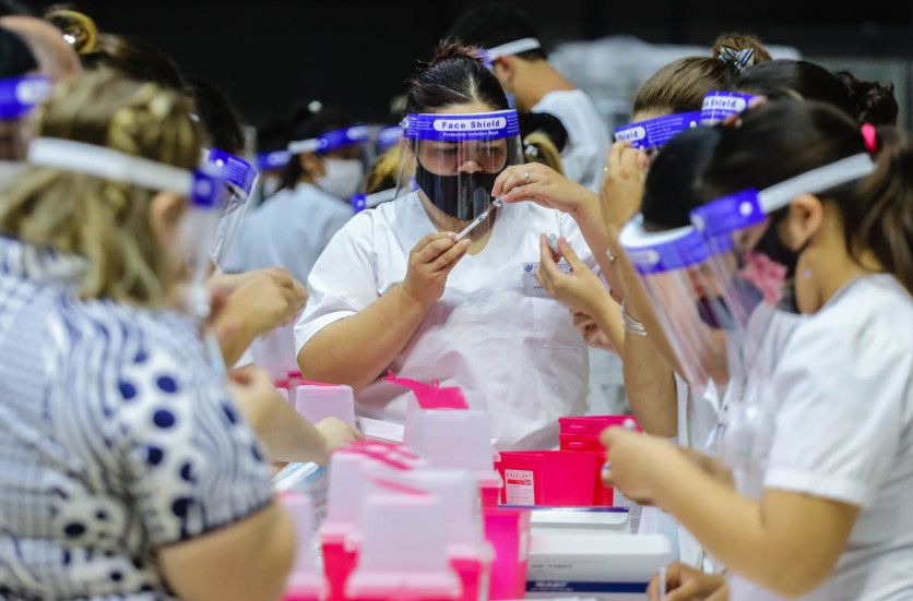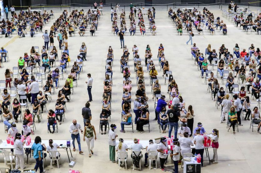 "La idea es vacunar a 500 docentes por hora y 5 mil en el día de hoy. Esto es posible porque el pasado sábado y este martes llegaron 18 mil y 15 mil dosis respectivamente. Por eso, se ha podido planificar este aumento de vacunación que es para menores de 60 y a profesionales de la salud independientes", explicó Mariana Álvarez, subsecretaria de Planificación y Coberturas Sanitarias del Ministerio de Salud provincial.