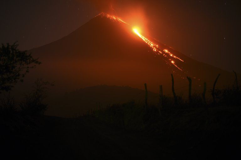 Las noches en el poblado de El Rodeo permanecen iluminadas por una especie de antorcha, a 2.552 metros de altura. Es la lava que expulsa el volcán Pacaya en Guatemala, que luego baja como un río ardiente por sus faldas.
