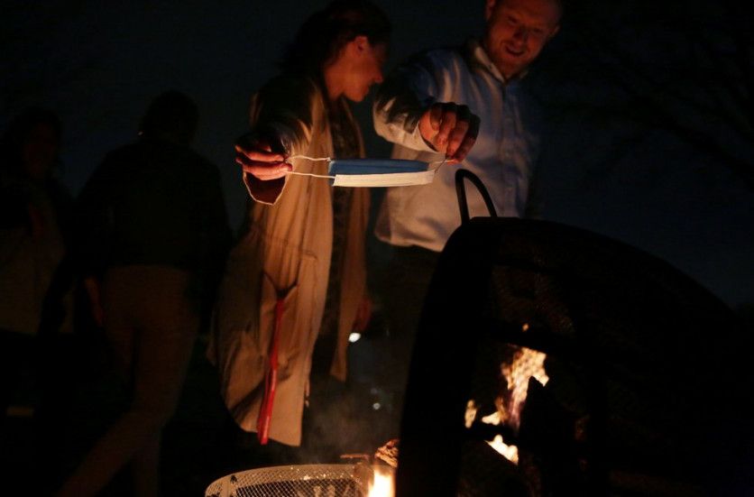 Dos personas tiran un cubrebocas al fuego durante, en Dallas, el miércoles pasado. SHELBY TAUBER REUTERS