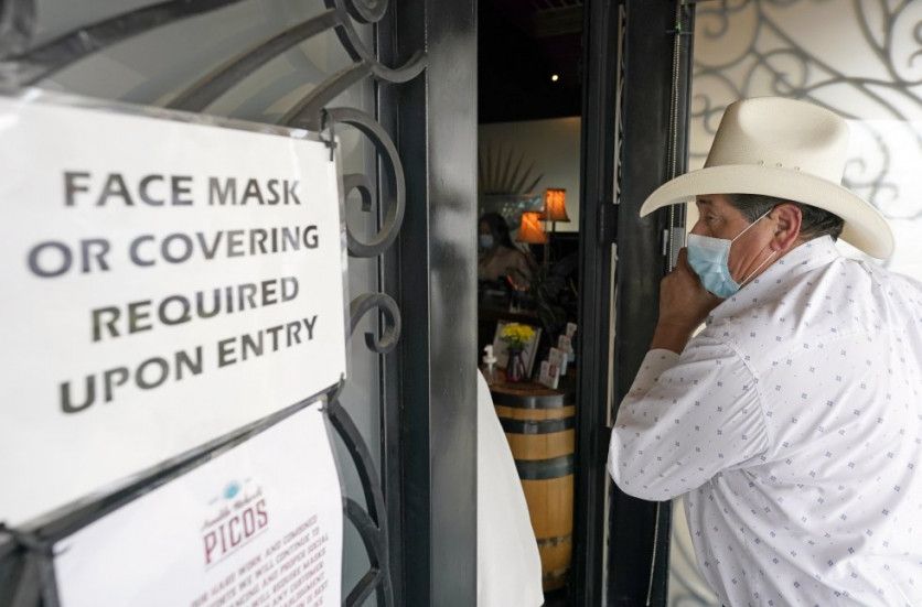 Un cliente usa una mascarilla cuando ingresa al restaurante mexicano Picos en Houston. Picos, como muchos restaurantes en todo el Estado, continúan operando a una capacidad reducida y piden a los clientes que usen cubreboca a pesar de que el gobernador Greg Abbott puso fin a los mandatos estatales para las medidas sanitarias. DAVID J. PHILLIP AP