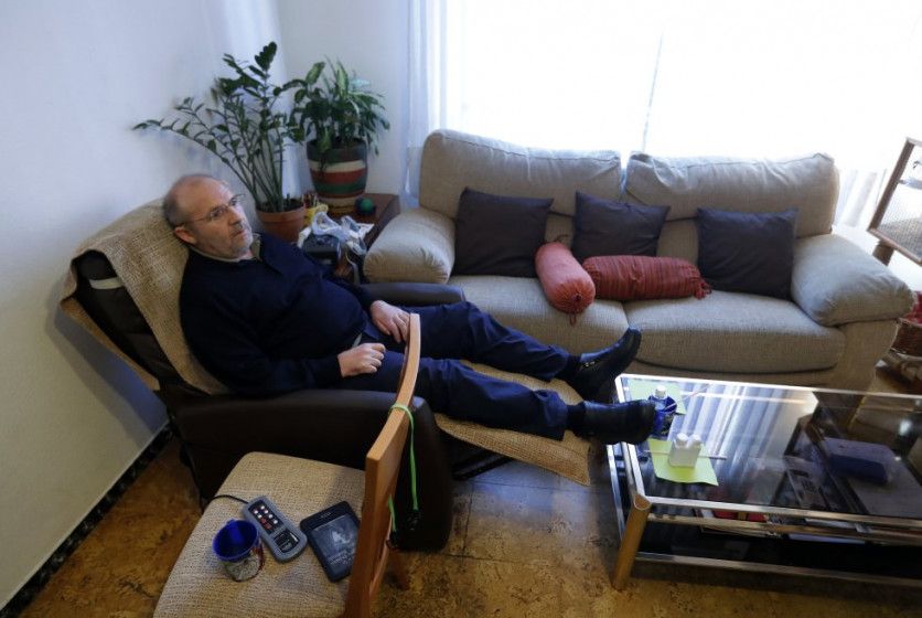 Jose Antonio Arrabal, enfermo de Esclerosis Lateral, en su casa, antes de tomar una dosis letal de Pentobarbital, en abril de 2017. BERNARDO PÉREZ