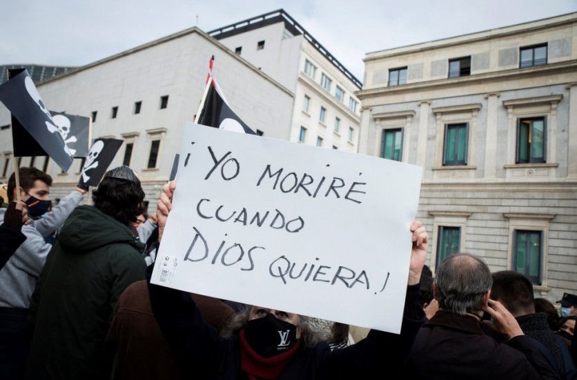 La Asociación Española de Abogados Cristianos participa en una concentración convocada en diciembre de 2020 ante el Congreso para rechazar a la ley de la eutanasia. LUCA PIERGIOVANNI EFE