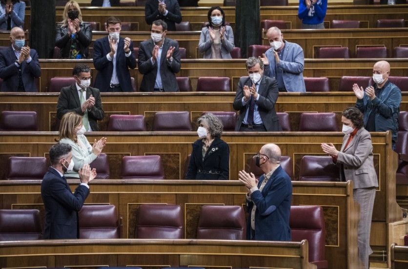 Diputados del Congreso aplauden a la exministra de Sanidad María Luisa Carcedo, impulsora de la nueva norma, tras la aprobación de la ley de la eutanasia. SAMUEL SÁNCHEZ