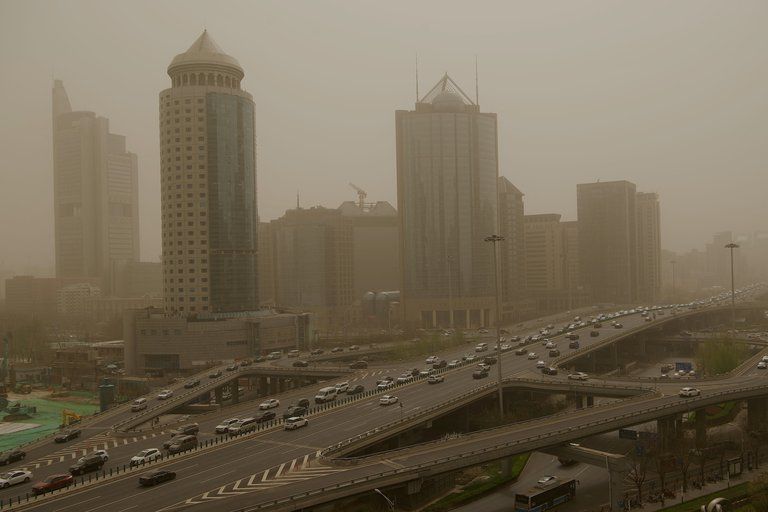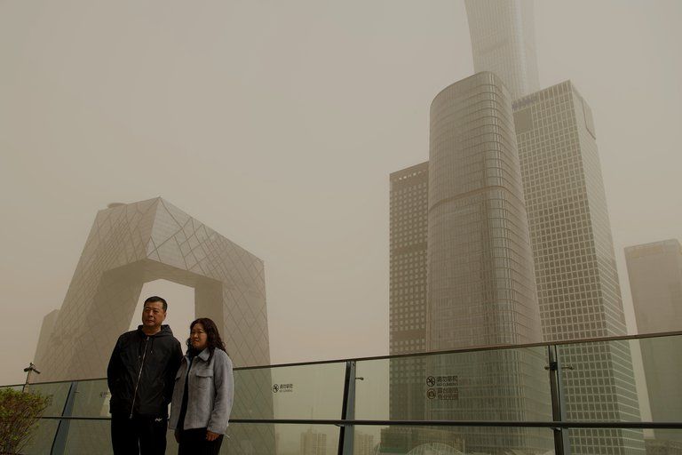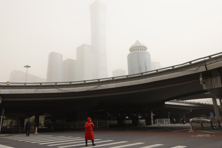 Beijing amaneció este domingo cubierta por cielos marrones de nuevo tras la segunda tormenta de arena proveniente del norte en menos de dos semanas.