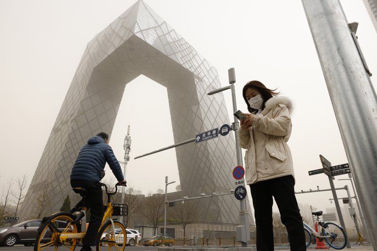 Las autoridades meteorológicas pequinesas emitieron este sábado una alerta amarilla -la tercera más alta- por la tormenta de arena.