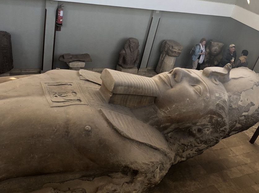 La Coloso de Ramsés II. La estatua tiene 12 metros de altura y fue construida durante su reinado. Fue encontrada al sur del delta del río Nilo por Giovanni Caviglia, un viajero italiano.