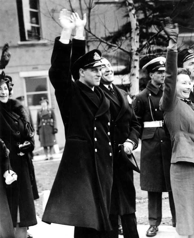 Carrera militar Tras dejar el internado en 1939, Felipe entra en el Real Colegio Naval en Dartmouth, donde se gradúa al año siguiente como el mejor cadete de su curso. Sirve en la Segunda Guerra Mundial en varios buques en el Índico, el Pacífico y el Mediterráneo. Participa en las batallas de Creta y del cabo de Matapan, ambas en aguas griegas. En 1941, con 21 años, se convierte en uno de los tenientes más jóvenes de la Armada británica; en 1943, durante la invasión de Sicilia, suya es la idea con la que engaña a los bombarderos alemanes y pone a salvo al Wallace', buque del que es segundo en la cadena de mando. En la imagen, en 1947, despidiendo en la base aérea de Northolt a su tío, lord Mountbatten, que parte a la India como virrey. CORDON PRESS
